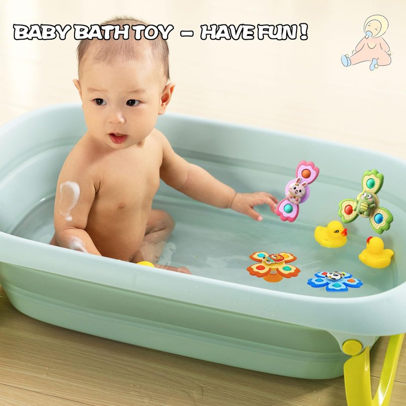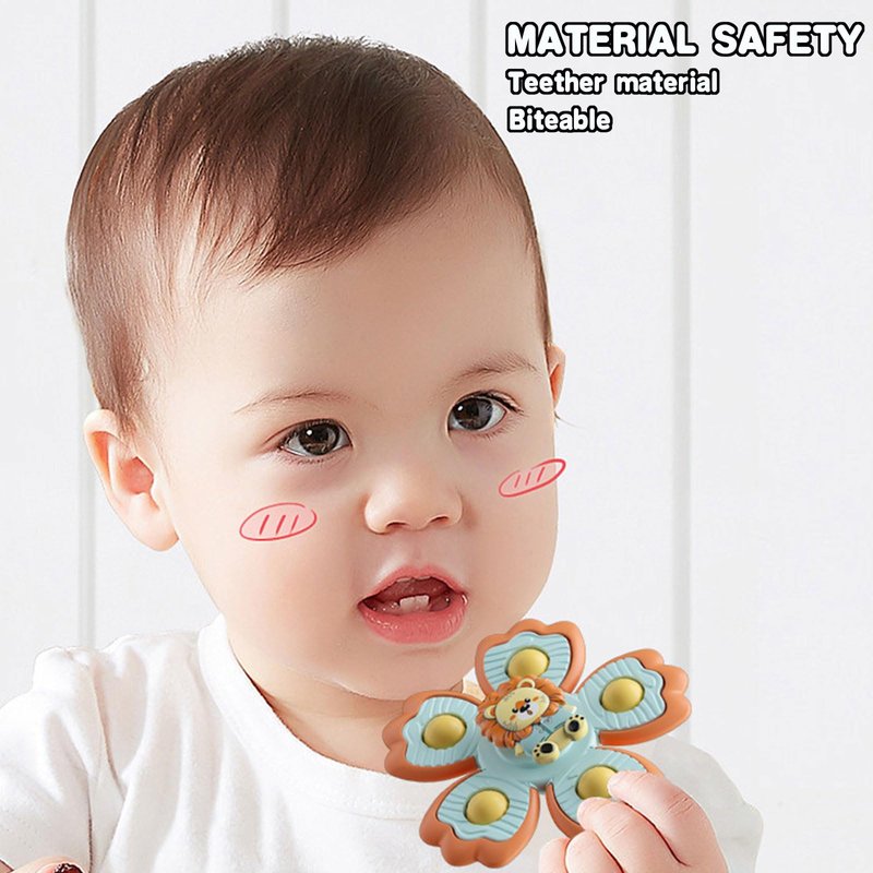 - 🌞Suction Cup Spinning Toy: With 4 kinds of cute shaped suction cups are more likely to attract the attention of toddlers, shaking the spinning toy will make a sound.Which will provide days and days of fun for your little guys.