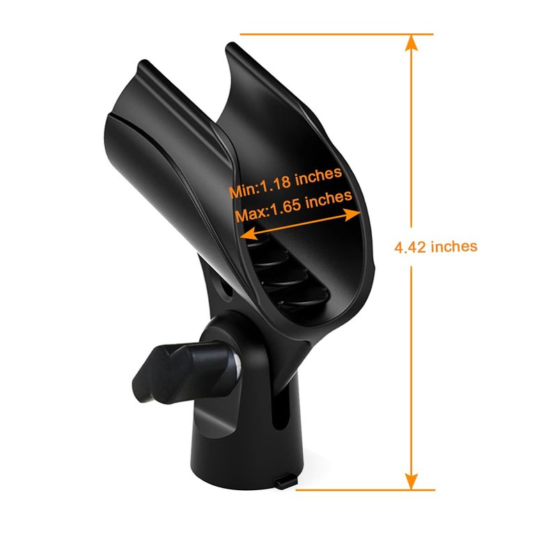 - The mic clip has a non-slip dent on the inside that holds the microphone well.Fits most microphone with 1.18-1.65 inch/30-40 mm handle.