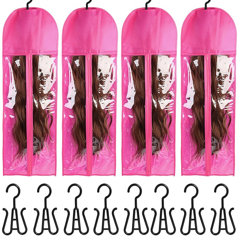 4 PCS Wig Holder Wig Storage Bags Wig Hanger Extra Long Hair Extension Holder Wig Storage for Multiple Wigs(31.5 Inch、Rose Red)