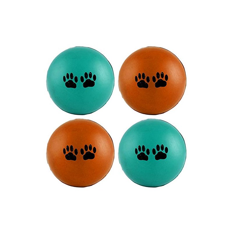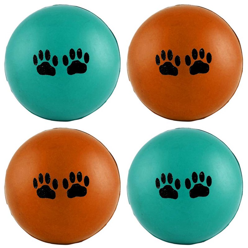 4 Pc Rubber Pet Balls Dog Cat Toys Puppy Chase Round Play Rattle Colorful 2.5"