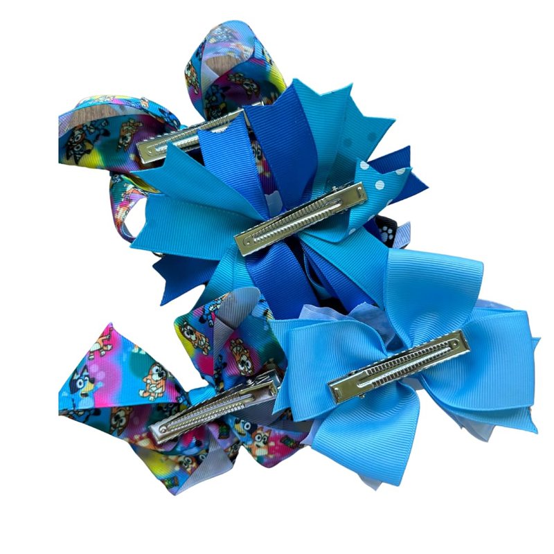 4 Piece Blue Dog Cartoon Inspired Hair Bow Set/Birthday and Cosplay Bows by Inspired Bows