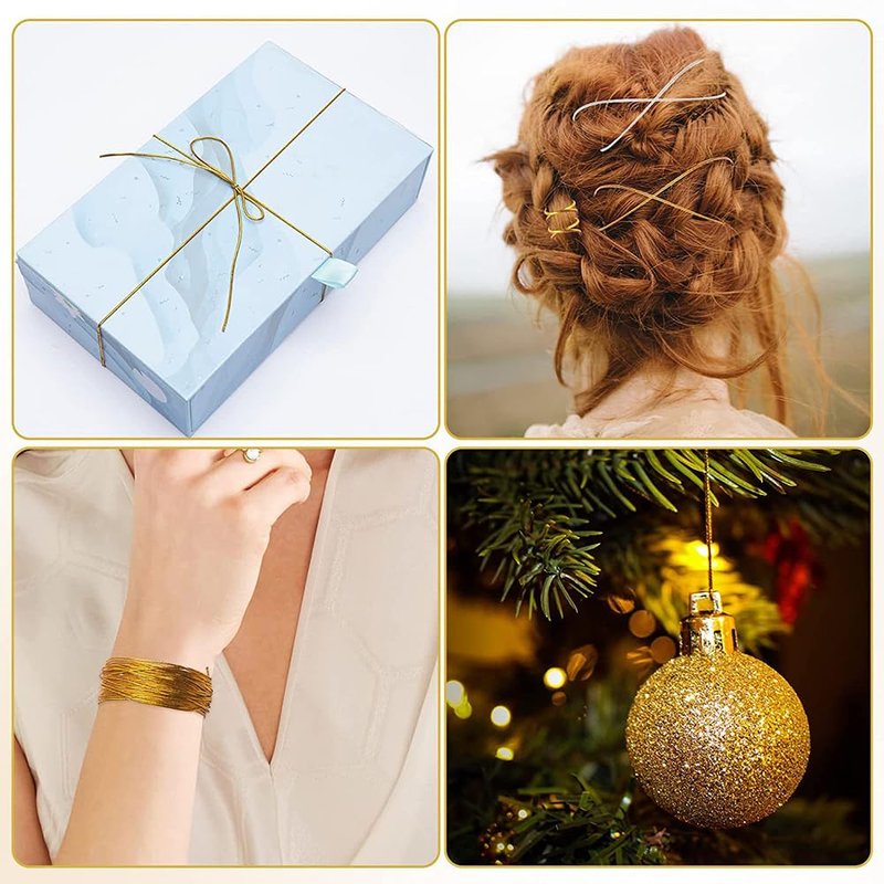 [Package Contents]: The package contains 4 strands of metal strings (2 gold strands, 2 silver strands). The length of each strand is 196.8 inches, and the diameter of the metal rope is about 1 mm, which is enough for different purposes.