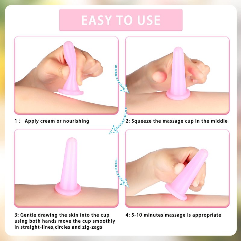 - What you can get: package will bring you 2 pieces of heart-shaped gua sha scraping boards and 4 pieces of silicone cupping massage cups; This gua sha massage tool set can be applied for face, neck, back, shoulder, hands, feet and other body parts, to relax yourself and reduce stress