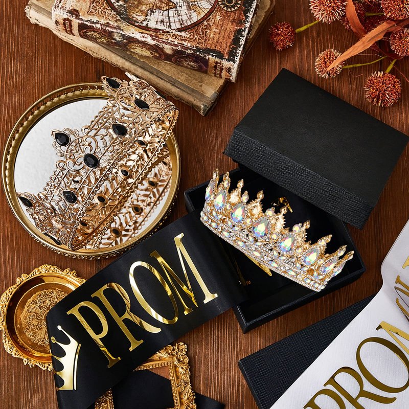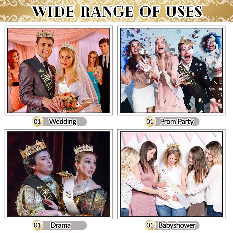 - Wear with Your Partner: you will receive a king crown for men and a princess tiara for women combination, 2 pieces prom queen and king satin sash, gold and silver matching, very harmonious and gorgeous, suitable to wear together