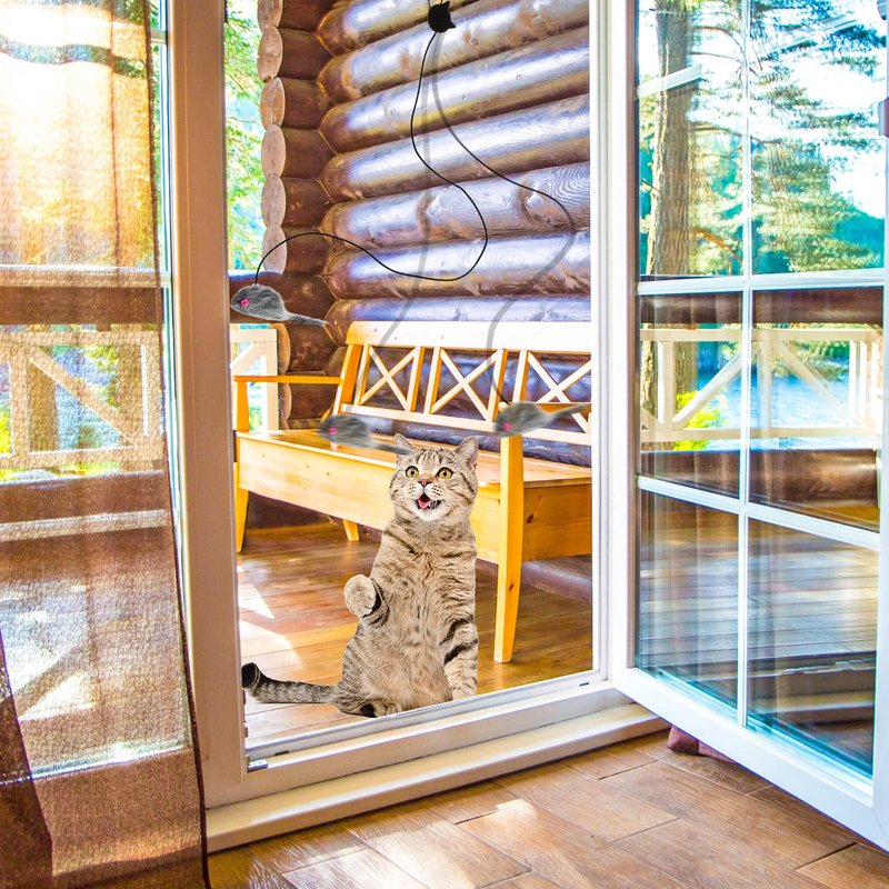 - The Design of Adjustable Elastic Rope: the hanging door mouse cat toy can It can be extended to 70.8 inches/ 1.8 meters; After hanging it well, the cat can run and jump in a wide range, freeing up your time and eliminating the need to tickle the cat with a tickle stick