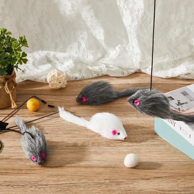 There will be 4 pieces of elastic mouse cat toys including gray and white colors, you can hang them on the door frame and door handle to interact with your cats. 4 pieces also allow you can share with a friend or colleague who owns a cat.