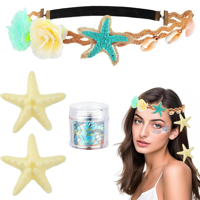 - Beautiful Accessories Sets: there are 2 pieces of starfish hair clips, 1 piece of starfish headband and 1 piece of makeup glitter, 4 pieces in total, enough for you to meet your daily decorative needs, attractive and adorable, proper for you to replace and share with others