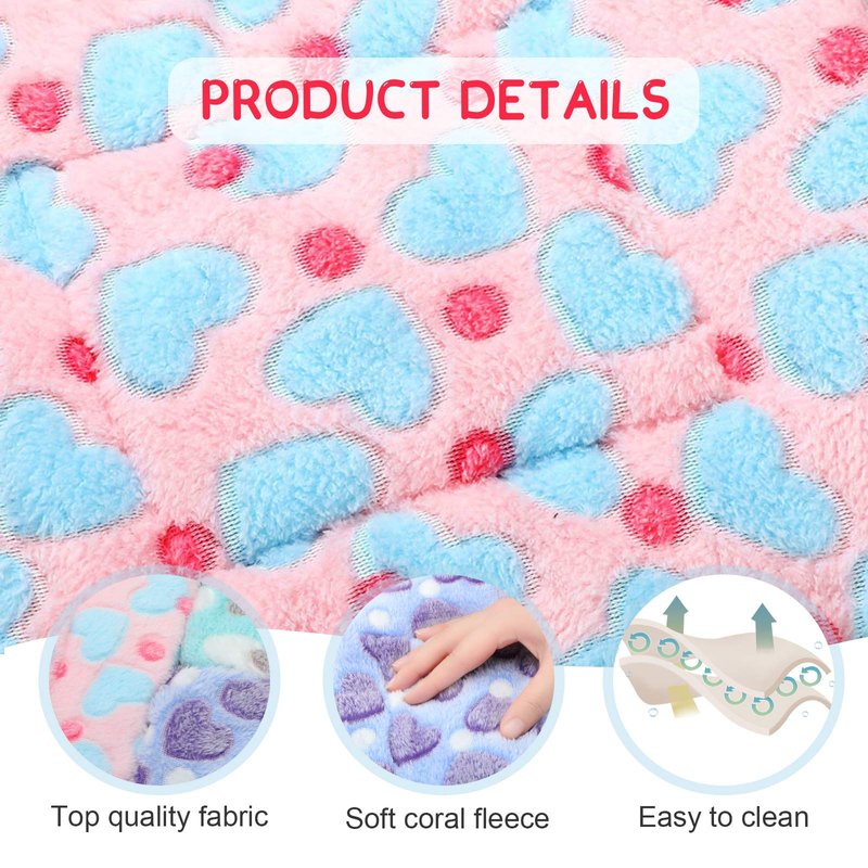 4 Pieces Rabbit Bunny Bed Guinea Pig Bed Mats Plush Bunny Pad Mats Small Animal Dog Cat Bed Dog Crate Kennel Pad Mat Hamster Cozy Dog Bed Mat for Small Animal (Heart Pattern, 10 x 11 Inch)