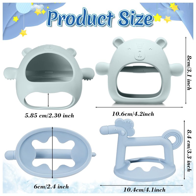 - Size Information: our bear teething pacifier is 10.6 x 8.3 cm/ 4.2 x 3.3 inches, which has a well wrapped design, and the horse teething toys are 8.4 x 10.4 cm/ 3.3 x 4.1inches, suitable for babies to wear; Both of them are practical chewing toys, preventing babies from biting, sucking or chewing their hands or fingers