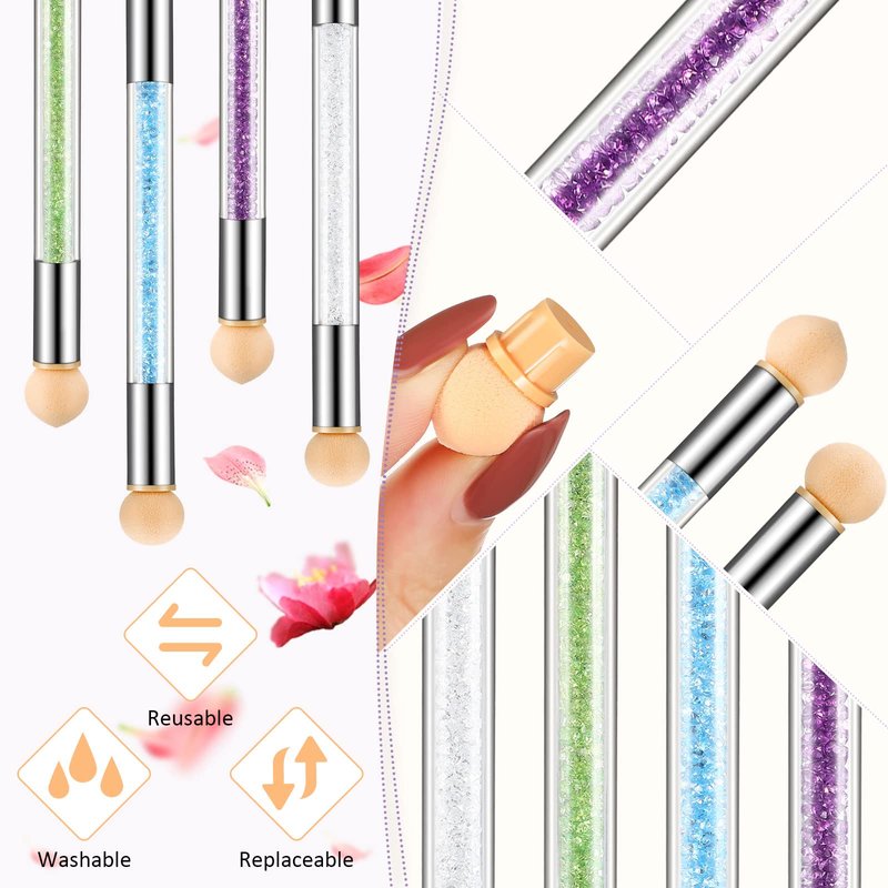 - Double head style: each sponge nail brush is designed with double heads which are round and pointed sponges, suitable for creating gradient design and applying glitter powder, you can draw any beautiful painting as you like, they are washable and replaceable, keep it clean and safe for next time using