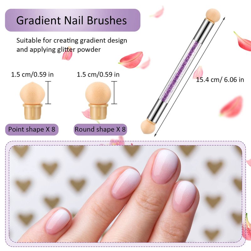 - Easy to hold and operate: our double head sponge nail brushes are good for gradient design, with a total length of 15.4 cm/ 6.06 inches, easy to hold and operate, just use the sponge head to pick some colored gel, and dot it on nails to get a gradient effect