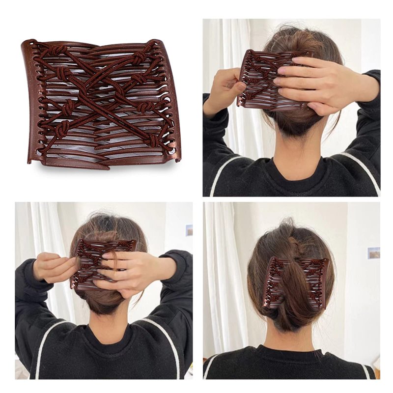 4 Pieces Stretchy Double Comb Hair Clip Adjustable Elastic Hair Comb for Thick Curly Hair Adjustable Majic Hair Clip Comb Hair Accessories(Coffee and Black)