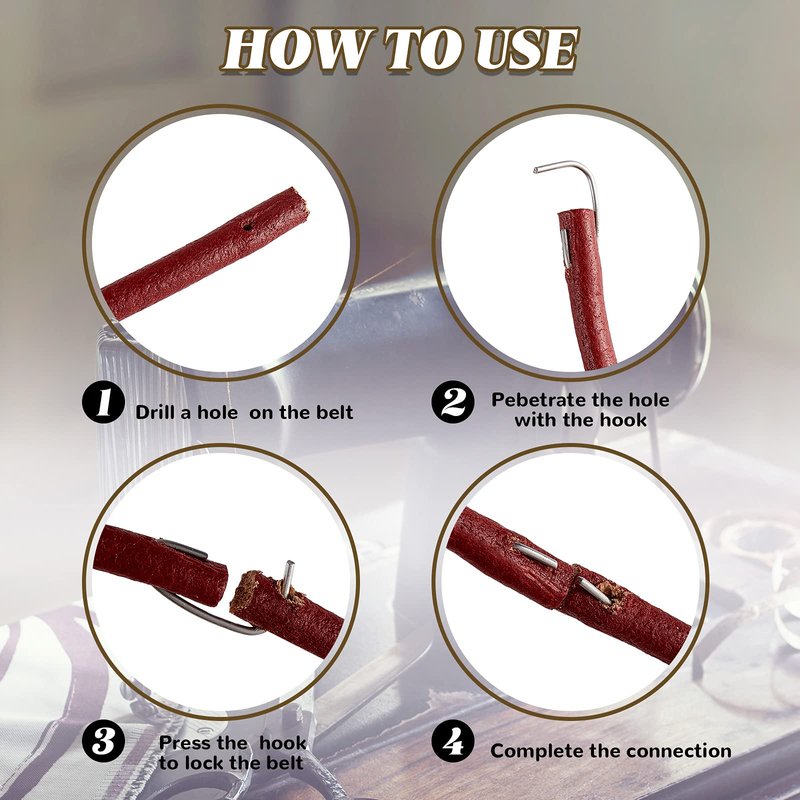 - Easy to use: please carefully measure the length of your own belt, cut off the excess length of our belt, use an awl to drill a hole in the tail, connect the head hook to the tail hole, then use pliers to clamp the hook, and finally install it into the sewing machine