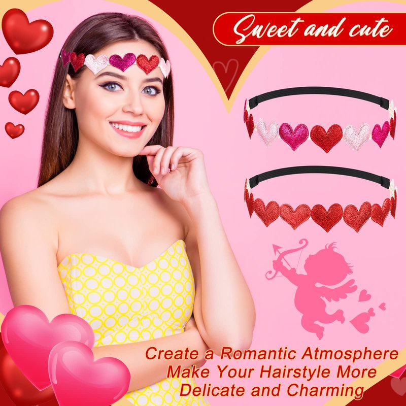 - Valentine Day Hair Accessory: there are 9 pink or red hearts on the glitter elastic headband, and can be a good choice to match your Valentine wearing, which will make you more sweet, cute and attractive