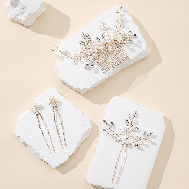 - VERSATILE USE: The four hair accessories come in different sizes that are perfect for securing veils, hair pieces or as decorative accents in braids and buns.