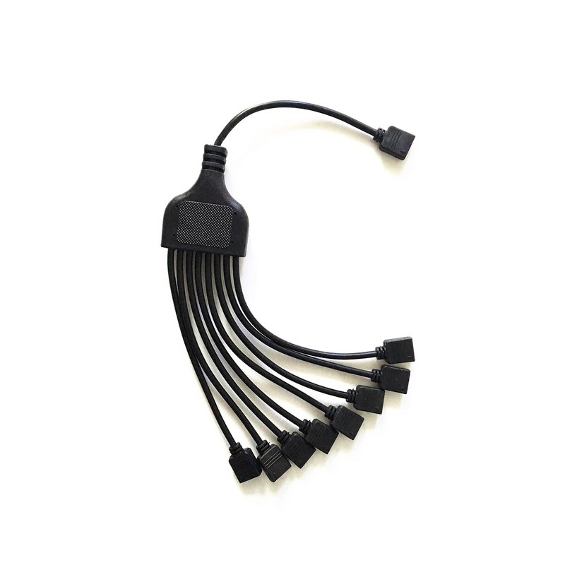 1 to 8 Splitter Cable Connect 8 color changing RGB 5050/3528 LED strips to a single controller with this 4 pin splitter cable. No soldering is required, simply match the arrows on the plug.
