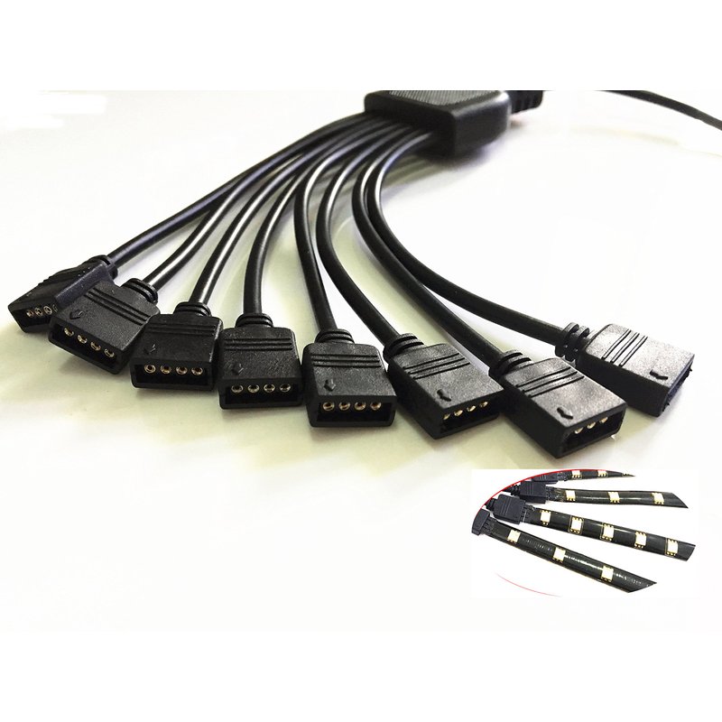 - This DC Power Adapter Cable splits 1 power signal into 8, enables you to connect 8 color changing RGB LED strips to a single controller