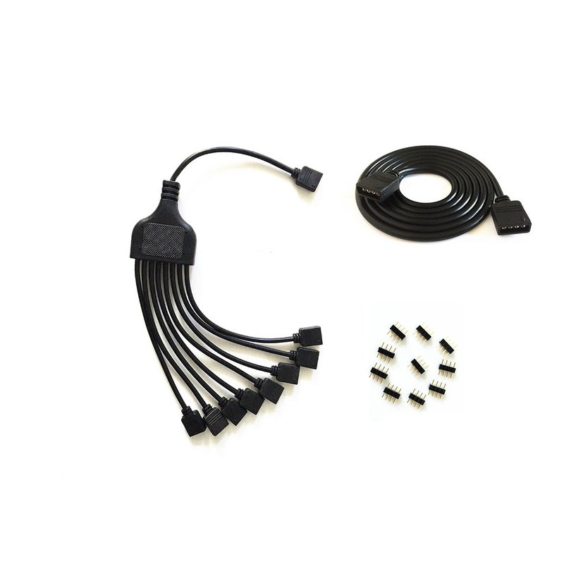 - Package Content: 1x RGB LED Strip Splitter Cable,1x 1m LED extension cord,9x male 4pin plugs (electroplated copper on the 4 pins, perfect conductivity)
