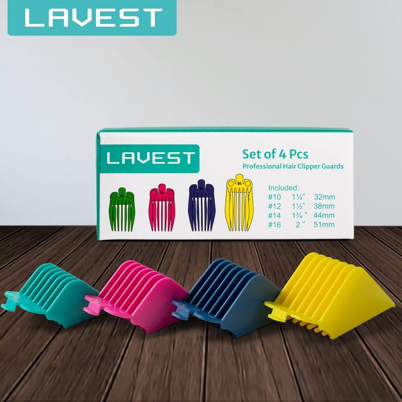4 Professional Extra Long Hair Clipper Guards Cutting Guides Fits for Most Wahl Clippers, Color Coded Clipper Combs Replacement - 1.25", 1.5", 1.75" & 2" (#10, 12, 14, 16)