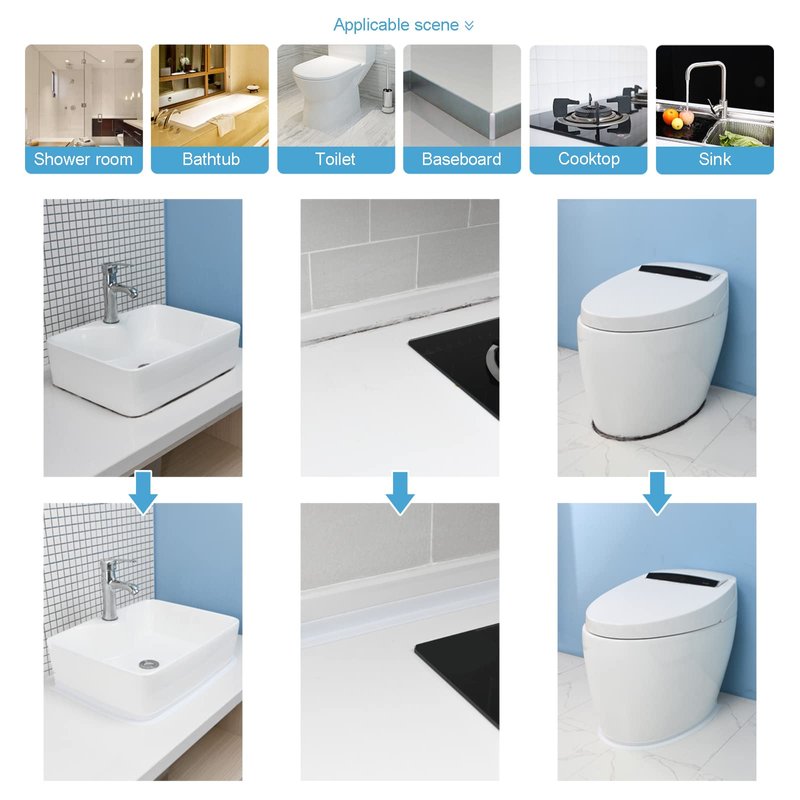 - Self-Adhesive: The bathroom caulk tape with a high performance adhesive can stick to any angle and surface to form a tight seal, you don't need anything to help stick it, it is easy and convenient to use.