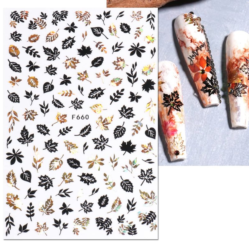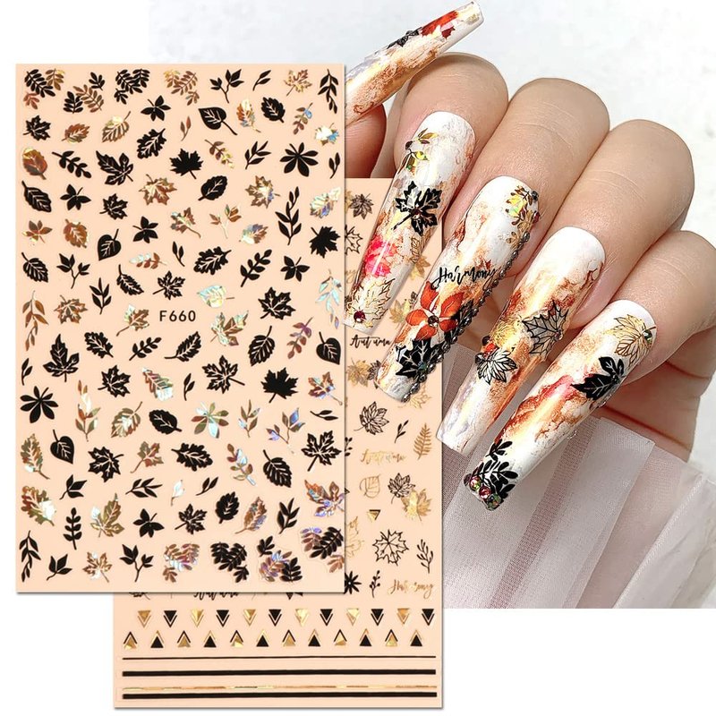 - 【Easy to Use】- 3D autumn nail art stickers are self-adhesive; so just choose you liked pattern, just use tweezers peel off to stick it gently your nail, applying over a base coat or nail polish will be better.