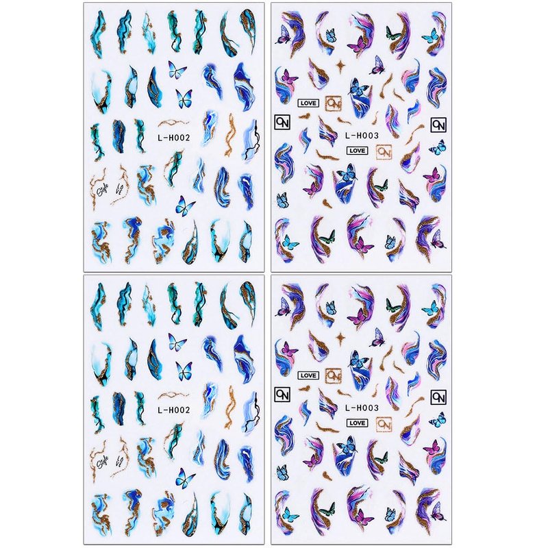 4 Sheets Purple Marble Smoky Nail Stickers,Blue Abstract Geometry Line Nail Art Stickers Golden Wave Lines Nail Decals Spring Butterfly Nail Design Sticker Nails For Nail Art Supplies Nail Accessories