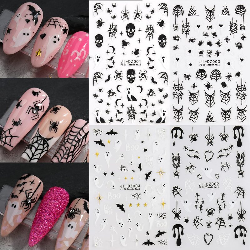 - 【Exquisite Design】Glitter nail art stickers have different patterns such as spider web, bat, ghost,spooky providing you with multiple choices and more than just decorating nail art supplies, it can also be used for diy greeting cards, diy phone cases, backpack decorations, room decorations and more.