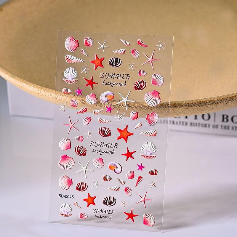 - 💕【What You Will Get】:You will get 4 sheets 5D relief nail art stickers with various patterns, anime, cartoon, flowers, stars, seashells, starfish, seagulls, glasses, bikini. 4 sheets of nail art stickers are available in rich summer patterns and decorative decals for various combinations of nail art.