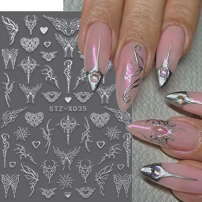 Item:3D Y2K silver metal butterfly heart star nail stickers