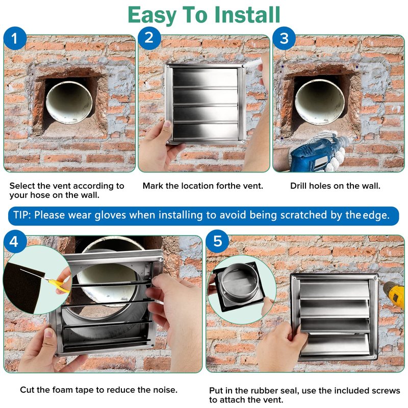 - ✅[Easy Installation] Grille dryer vent exterior wall comes with 4pcs screws, 1pcs rubber seal, 1pcs foam tape. The rubber seal will be more effective keeping out the cold air. Nice touch is that mounting screws are stainless steel too!