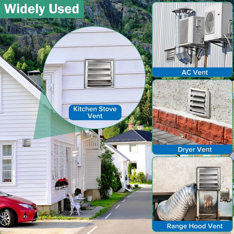 - ✅[Many Uses] Louvered Exhaust Vent Cover widely used in dryer vent, range hood vent, AC vent, shower fan vent, kitchen stove vent, etc. If not satisfied, please contact us, we will help you solve your concerns or provide a full refund.