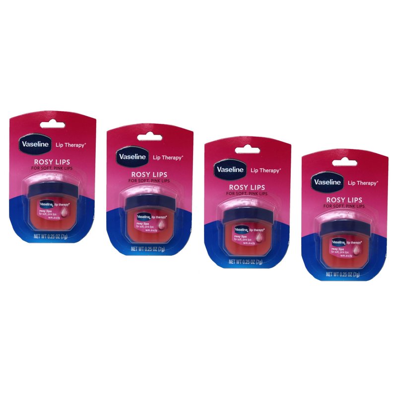 4 Vaseline Therapy Lip Balm Glowing 0.25 Oz Rosy Flavor Petroleum Jelly Mini Jar