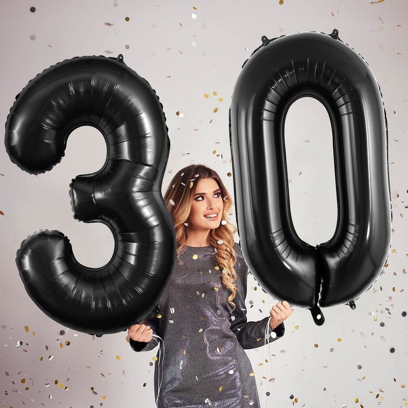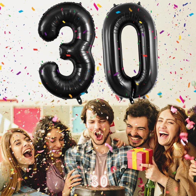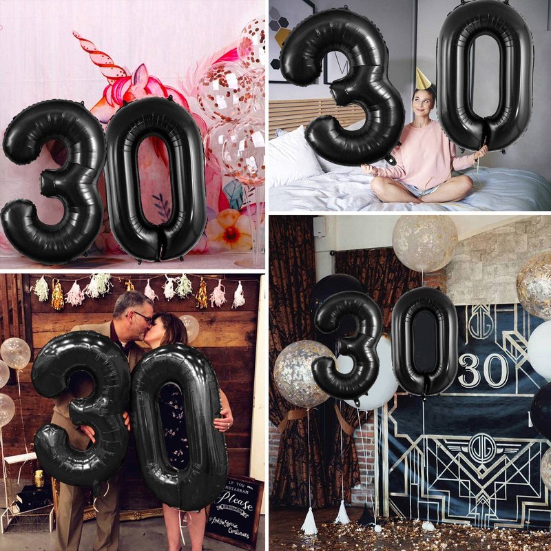 40 Inch Black 30 Number Balloons, Jumbo Foil Balloons for 30th Birthday Party Decorations Supplies / 30th Anniversary Event