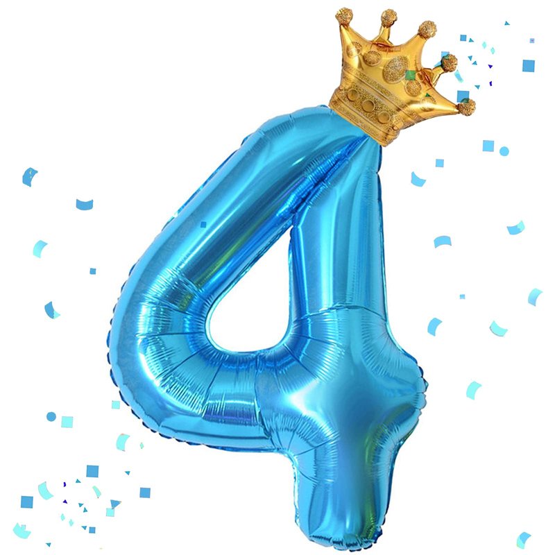 40 Inch Blue Number 4 & Mini Crown Balloon for Birthday Party Decorations, 4th Birthday Party Decorations Blue Theme Party Balloons Decorations Supplies