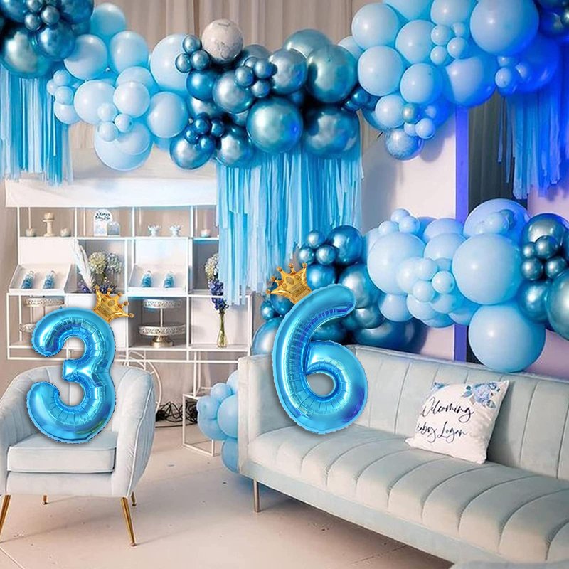 - Package includes: 1pcs 40inch blue digital balloons, 1pcs mini crown balloon, 1pcs straw, 1 sheet glue dots. (Used to connect crown balloons and digital balloons; you can also stick balloons anywhere you want to decorate)