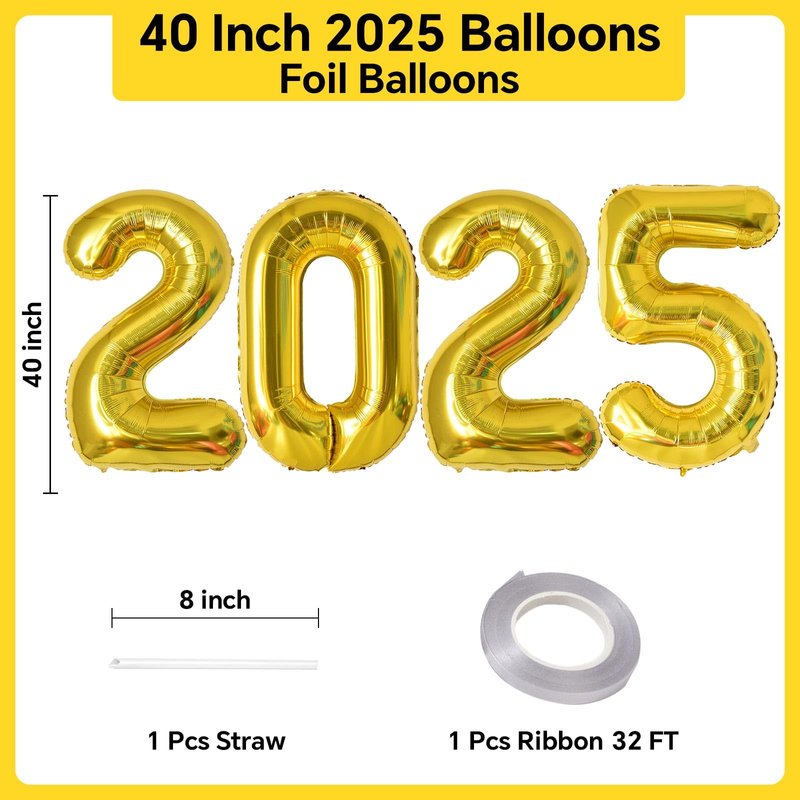 - Package Includes : 40inch Gold number 2025 balloons, 1 straw, 1 ribbon.