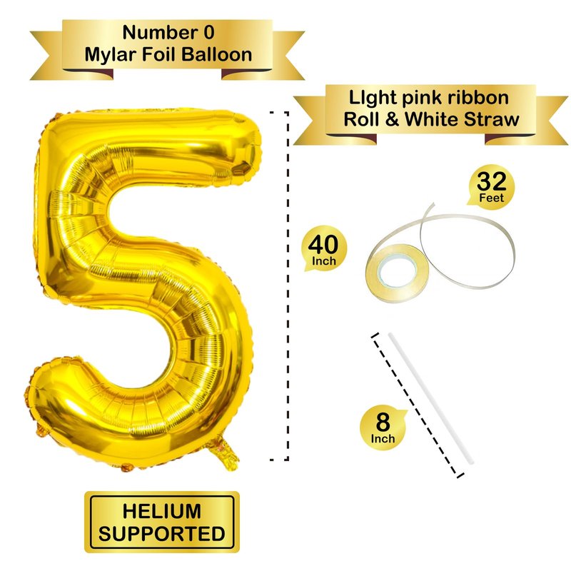 - 【Package Includes】1pcs 40-inch gold 5 number balloon, 1roll of balloon string, 1pcs Straw. The dazzling color and giant size make it really eye-catching.