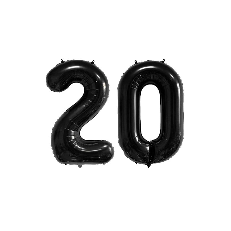 40 Inch Number Balloons 20 Black Big Giant Jumbo Number Foil Mylar Balloons for 20th Birthday Party Supplies Anniversary Events Decorations (black-20)