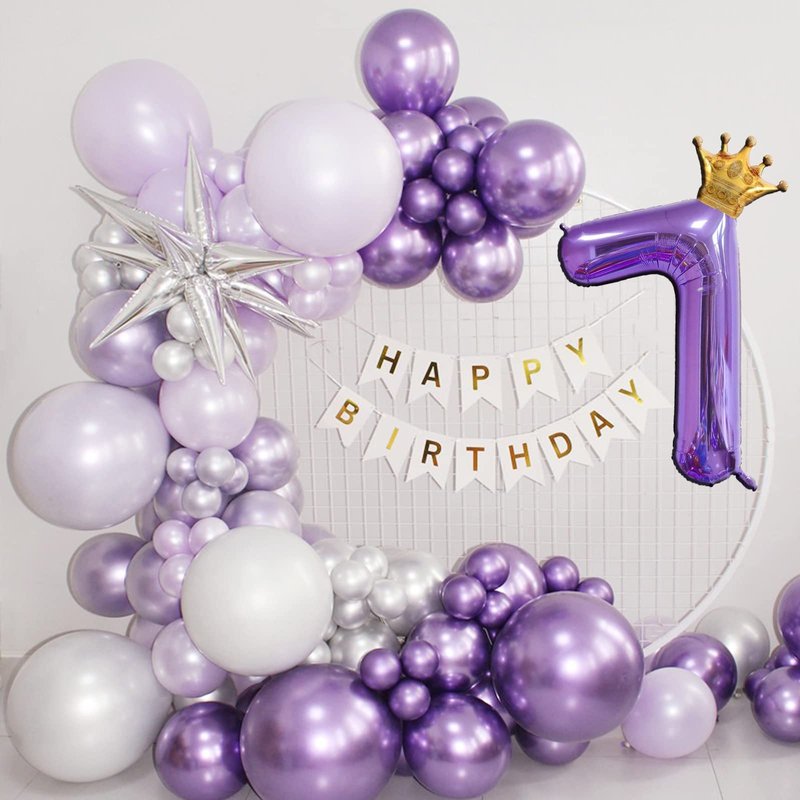 - Package includes: 1pcs 40inch purple digital balloons, 1pcs mini crown balloon, 1pcs straw, 1 sheet glue dots. (Used to connect crown balloons and digital balloons; you can also stick balloons anywhere you want to decorate)