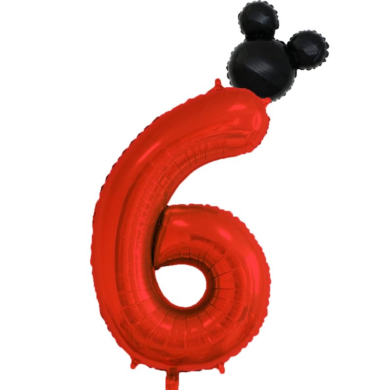 40 inch Red Number 6 Balloon & Mini Mouse Head Balloon, 6th Birthday Party Decoration Balloons, Cartoon Mouse Birthday Party Supplies Baby Shower Decoration, Red Black Theme Party Decorations Supplies