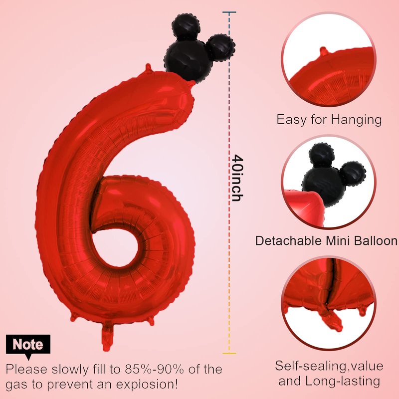 - Package includes: 1pcs 40inch red number balloon; 1pcs mini mouse head balloon, 1pcs straw, 1 sheet glue dots,used to connect two balloons.