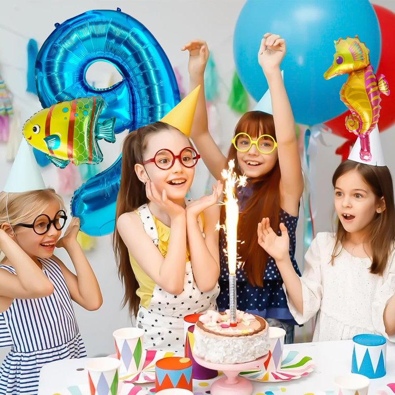 - 【Applicable Occasions】: The sea animal number 9 balloon is very eye-catching and very perfect for birthday party or other decorations, which will make the celebration vivid and amazing. Great for under the sea theme party, shark theme party, dolphin party, ocean themed party, baby shower, kid's birthday, blue sea themed party, photo booth props, etc; Also perfect pair to other number balloons, you can use your imagination and creativity to decorate a unique party.