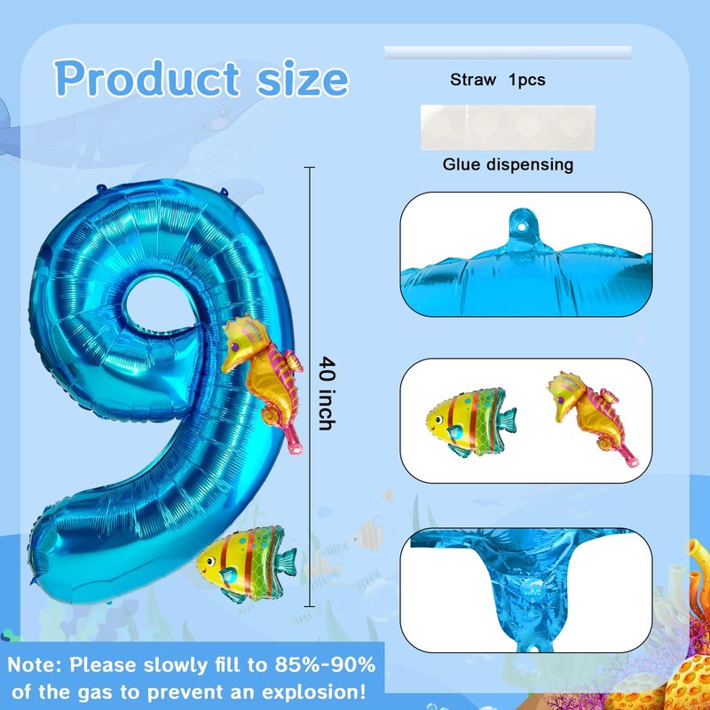 - 【Durable and Reliable Materials】: Our 40 inch number 9 balloon under the sea is made of high-quality aluminum foil material, non-toxic and odorless, with high quality technology with neat edges that are not prone to explosions and leaks is ideal for birthday parties. And can be safely used around children, will bring life to the birthday party decorations for your child. Also after deflating can be reused and recycled, withstand long-term entertainment.