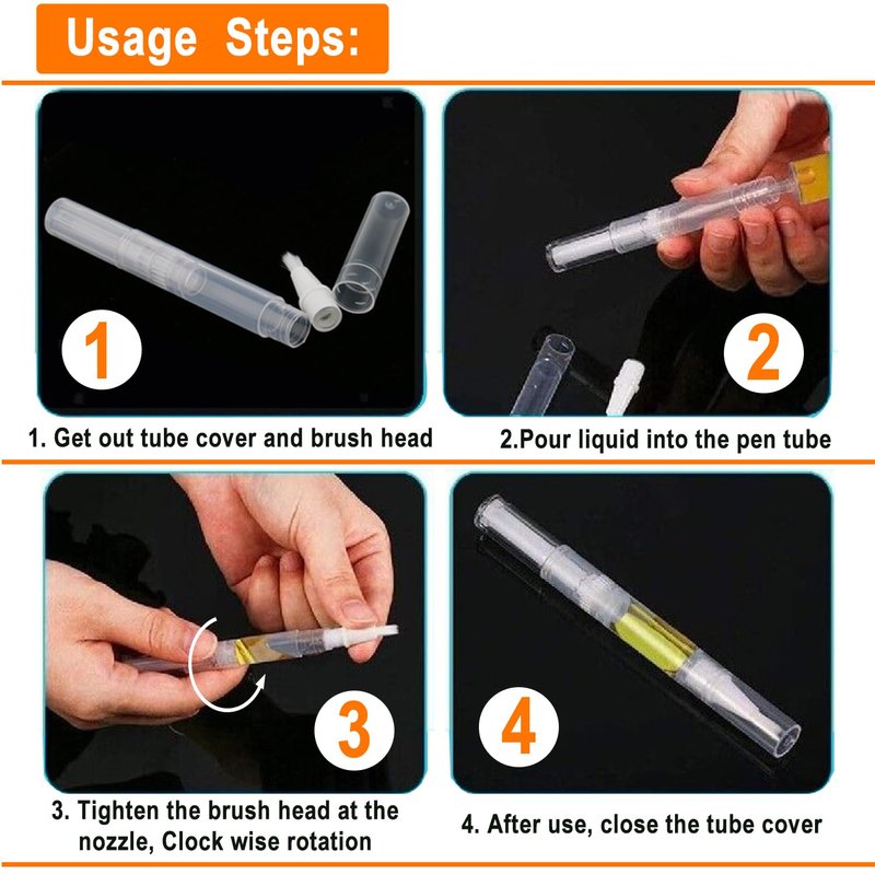 - Transparency & Leakproof -- The transparent bottle design can help you identify the remaining dose in the pen tube. The nail oil pen has a good seal, which has good sealing performance and can prevent liquid leakage.