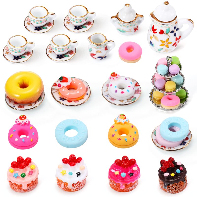 - Wide application: you can use miniature teacups and donut dessert toy sets to hold hearty afternoon tea in entertainment games, which are suitable for DIY dollhouse miniature accessories, kitchen, dining room, living room, dining room, bar, etc., or as decorations on Christmas, birthday, New Year and other holidays