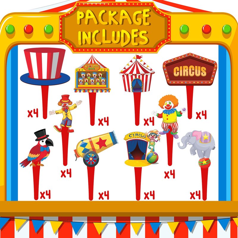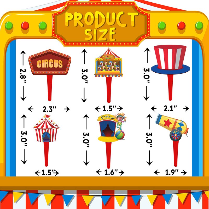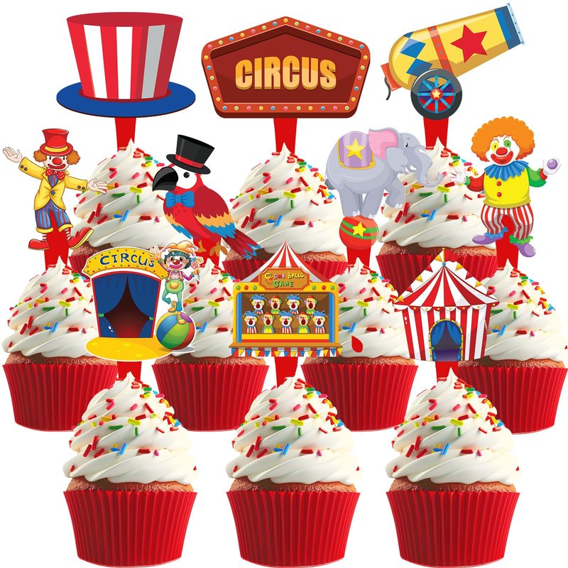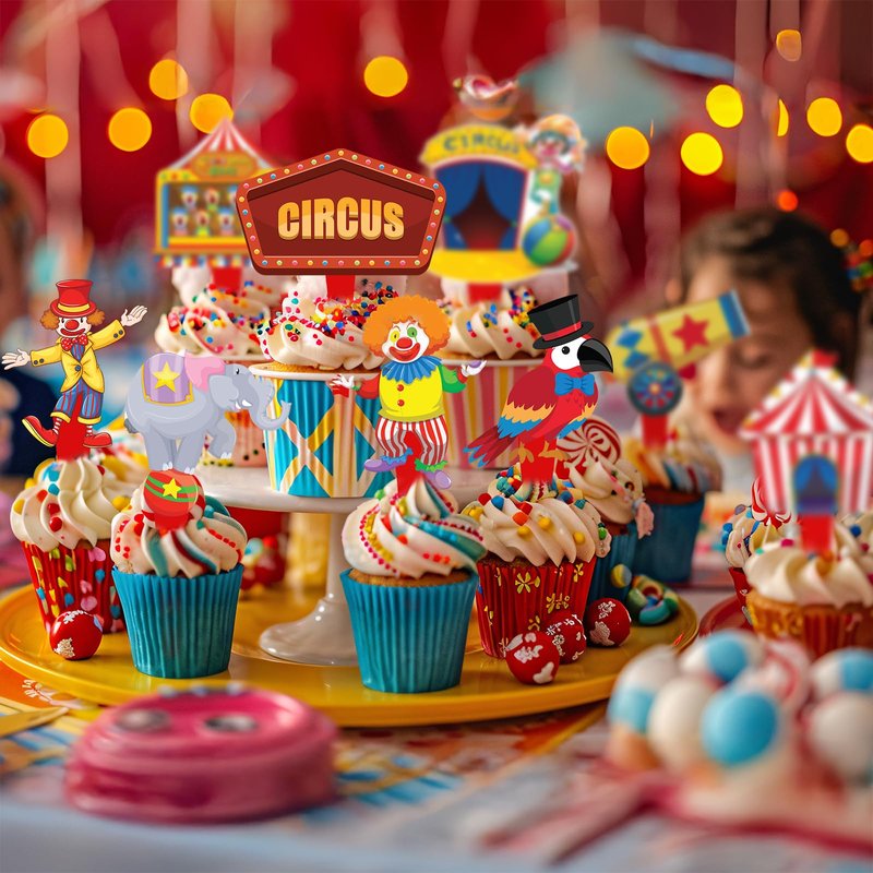 - CIRCUS MAGIC - Bring the big top to your party with these whimsical circus-themed cupcake toppers! Perfect for a circus party, carnival baby shower, or birthday celebration, these colorful decorations will add a festive touch to your dessert table.