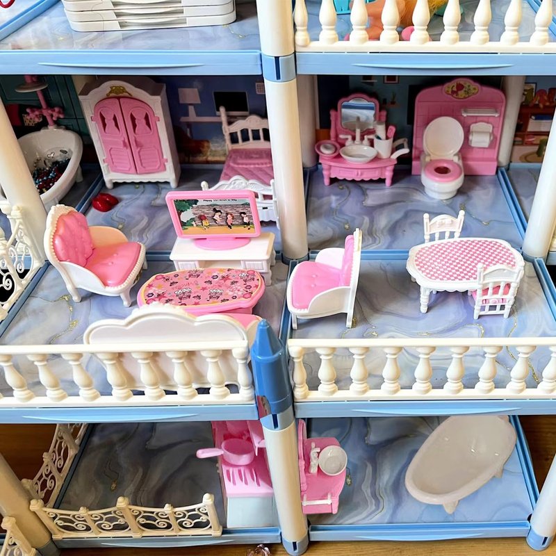 - 【High quality materials】All furniture accessories are made of high-quality ABS plastic material, non-toxic, BAP-free, sturdy and durable. All edges are rounded and polished, smooth and without rough surfaces, your children can play with confidence. The soft pink-white color is good for children's eyes when they play for long periods of time.