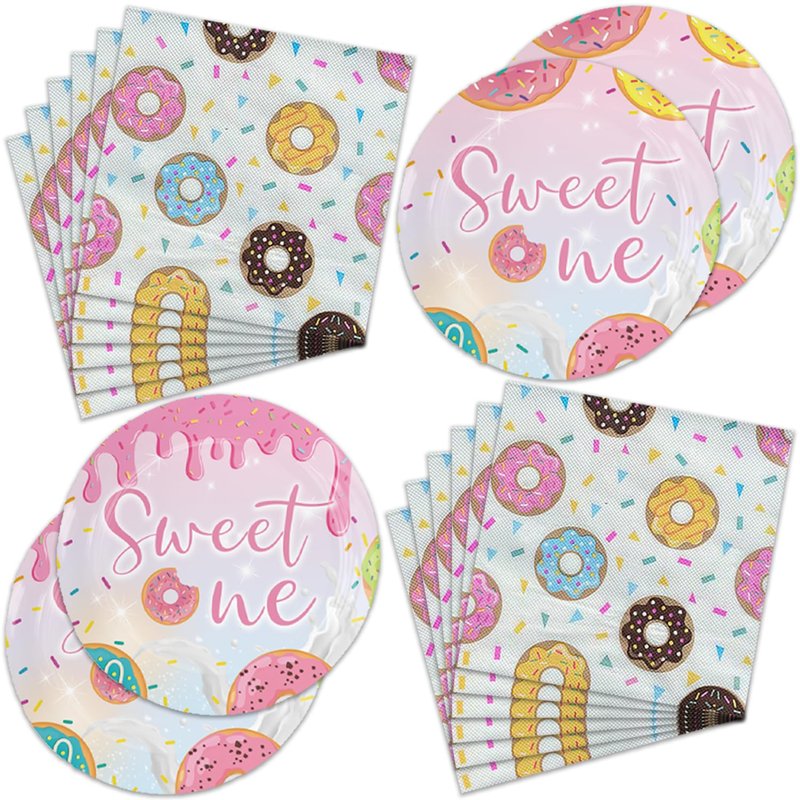 40 Pcs Donut Party Supplies, Donut Plates and Napkins, Donut Party Plates , Napkins for Sweet One Birthday Party Baby Shower Donut Party Decorations