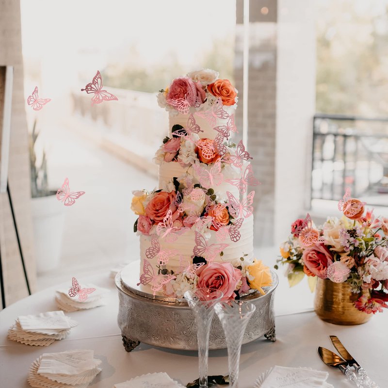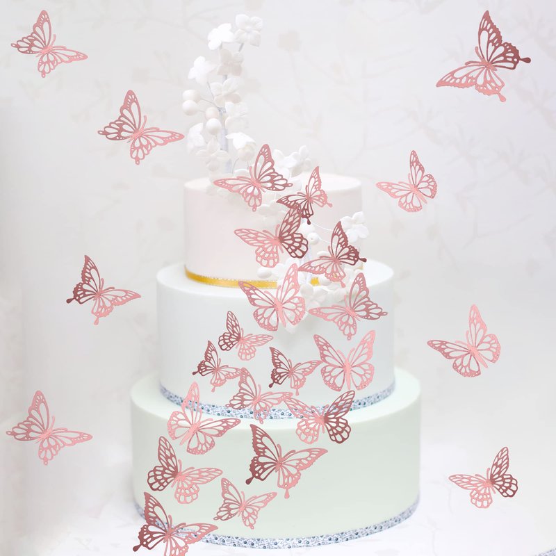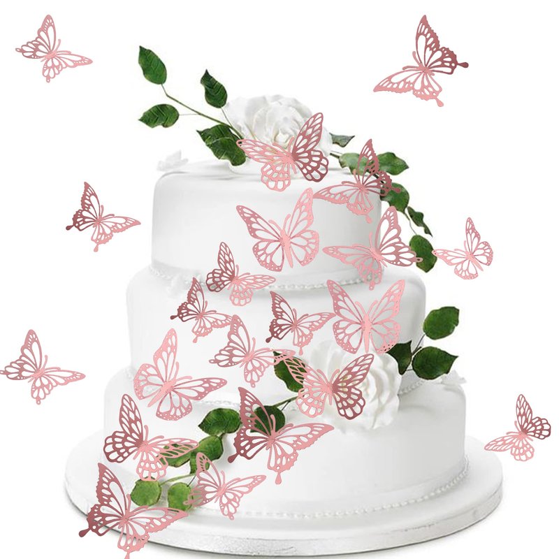 40 PCS Lively 3D Butterfly Cupcake Toppers Laser Cut Hollow Butterfly Cake Decorations for Baby Shower Wedding Anniversary Birthday Party Supplies Butterfly Wall Decor Mixed Styles Rose Gold