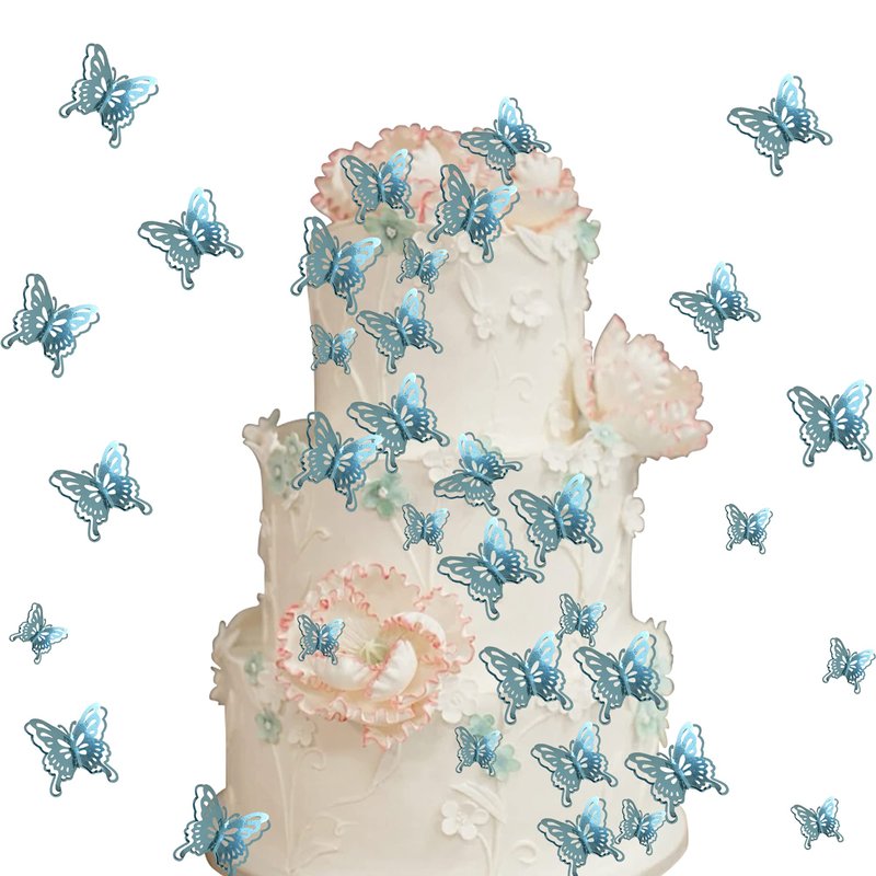 40 PCS Lively 3D Butterfly Cupcake Toppers Mixed Size Hollow Art Butterfly Cake Topper Decorations for Baby Shower Wedding Anniversary Kids Birthday Party Supplies Sky Blue
